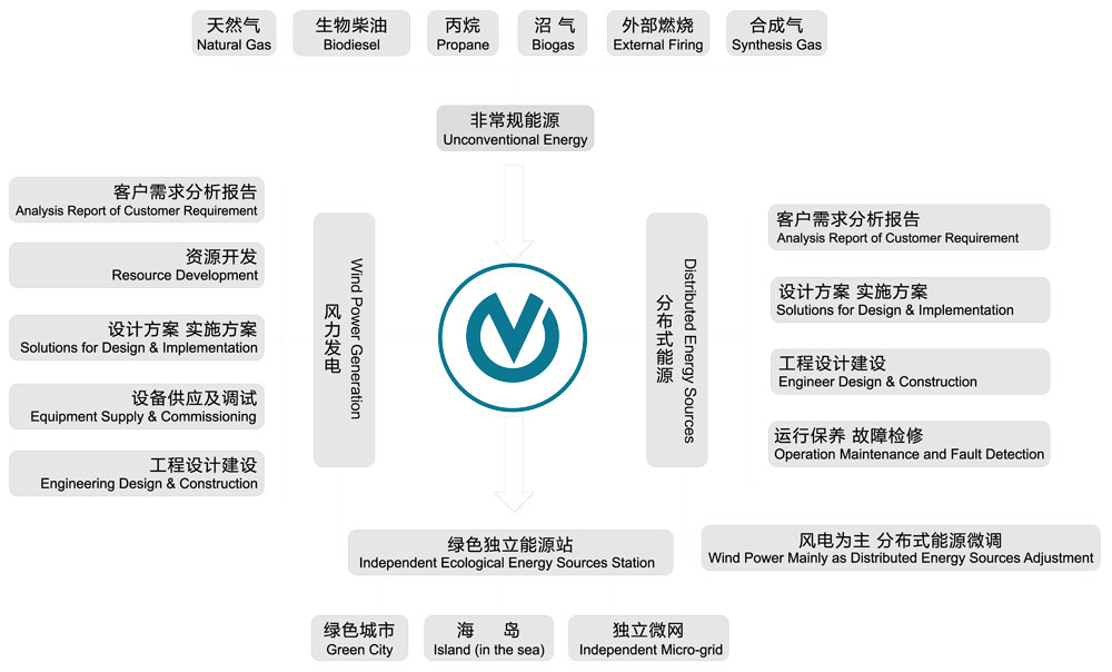 分布式能源业务主要包括分布式能源项目的开发、投资和建设,以及分布式能源站配套设备的生产和安装。主要推广燃气热电联供技术,通过能源的梯级利用,可使能源总利用效率达到80%以上。适用于城市综合体、医院、宾馆、工业园区、大学城等热负荷区域。